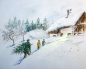 Grußkarte "Weihnachten - Haus" Aquarell /KunstdruckGrußkartengröße ca. 10 x 15 cm oder 12 x 17 cmSet besteht aus Klappkarte mit Motiv, Kuvert, verpackt in Klarsichthülle