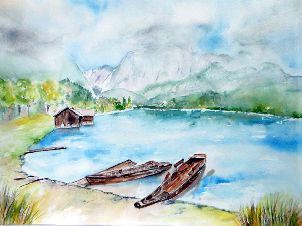 Altaussee Boote / Aquarell / Kunstdruck